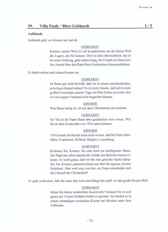 Pflüger: Du hast ein natürliches Sprachgefühl, das kann man nicht lernen. Mit dir zu streiten, ist manchmal auch herrlich albern. Und was meine Manuskripte angeht: Ich habe mir dazu ein eigenes Programm in Word geschrieben. Mit Makros kann ich das Layout meiner Texte so simulieren, dass sie der Idealvorstellung des endgültigen Layouts fast zu hundert Prozent entsprechen. Damit arbeite ich auch beim Drehbuchschreiben. Man könnte einwenden, dass es überflüssig ist, weil das Drehbuch ja nicht gedruckt wird. Da bin ich anderer Meinung. Ich finde, es sollte ein Vergnügen sein, ein Drehbuch zu lesen. Bei schlecht gesetzten Drehbüchern lenkt mich die äußere Form vom Inhalt ab. Mag sein, dass das außer mir niemanden interessiert. Oft habe ich jedoch von Schauspielern, Regisseuren, Produzenten gehört, dass meine Drehbücher wohltuend »anders« aussähen. Greifen kann das selten einer, die meisten denken auch nicht darüber nach, warum sie so empfunden haben. Es ist ein schönes Beispiel dafür, wie die Gestaltung in unserem Unterbewusstsein wirkt.
