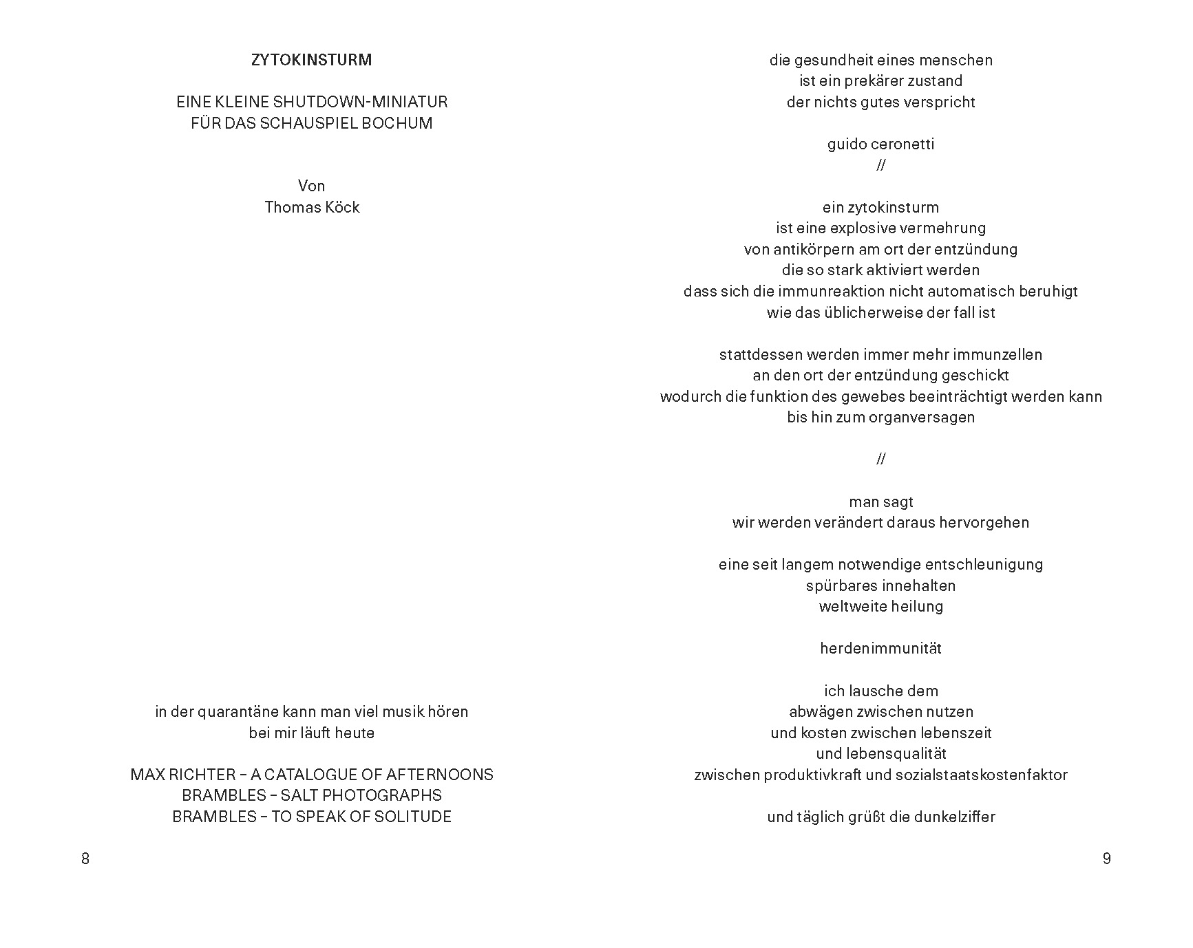 Das neue Suhrkamp Theater Magazin versammelt vier szenische Miniaturen von Sivan Ben Yishai, Thomas Köck, Akın Emanuel Şipal und Miroslava Svolikova, die diesen Sommer entstanden sind. Jetzt erscheinen sie zudem im Logbuch, als kleine Serie.